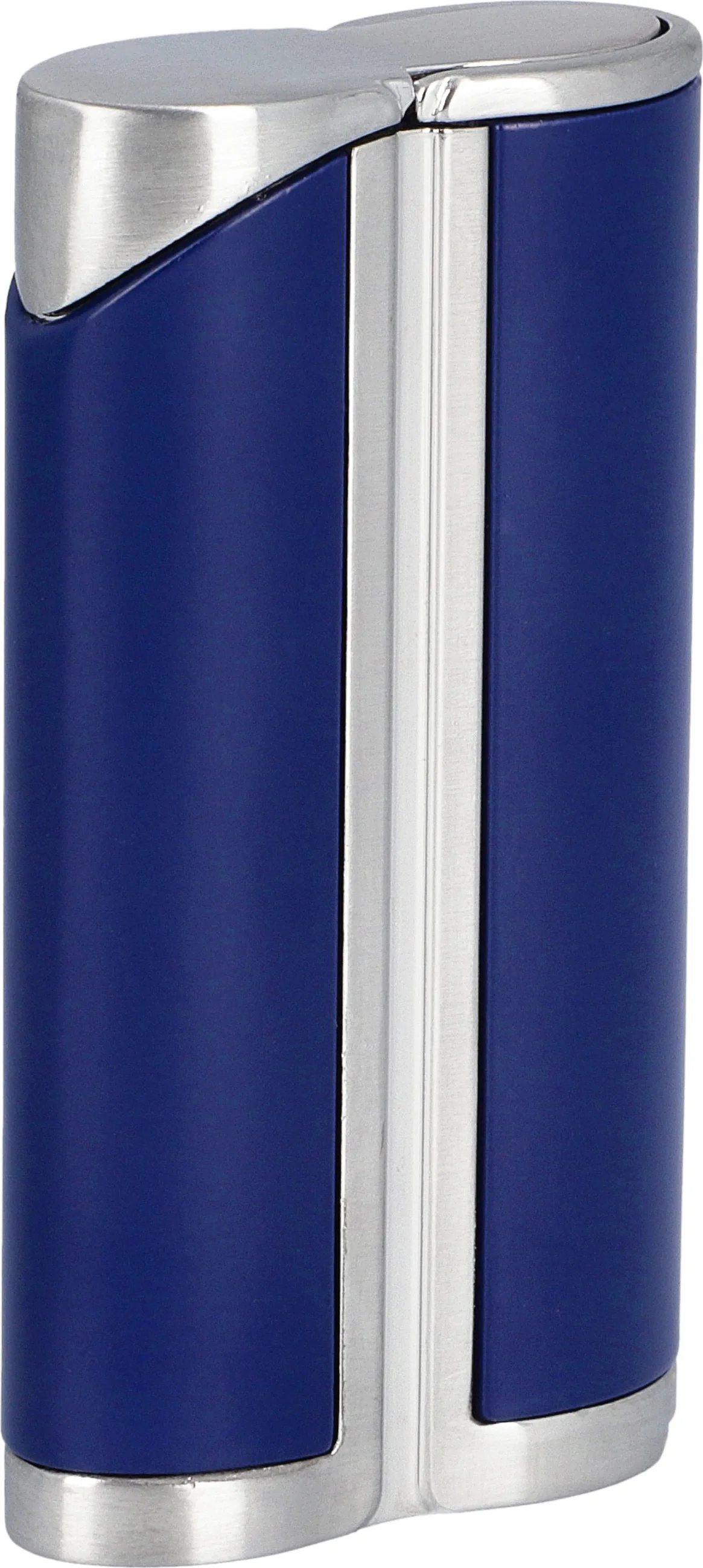Brichetă cu un singur jet adorini Curve albastru cu argintiu satinat, cu perforator de trabuc inclus