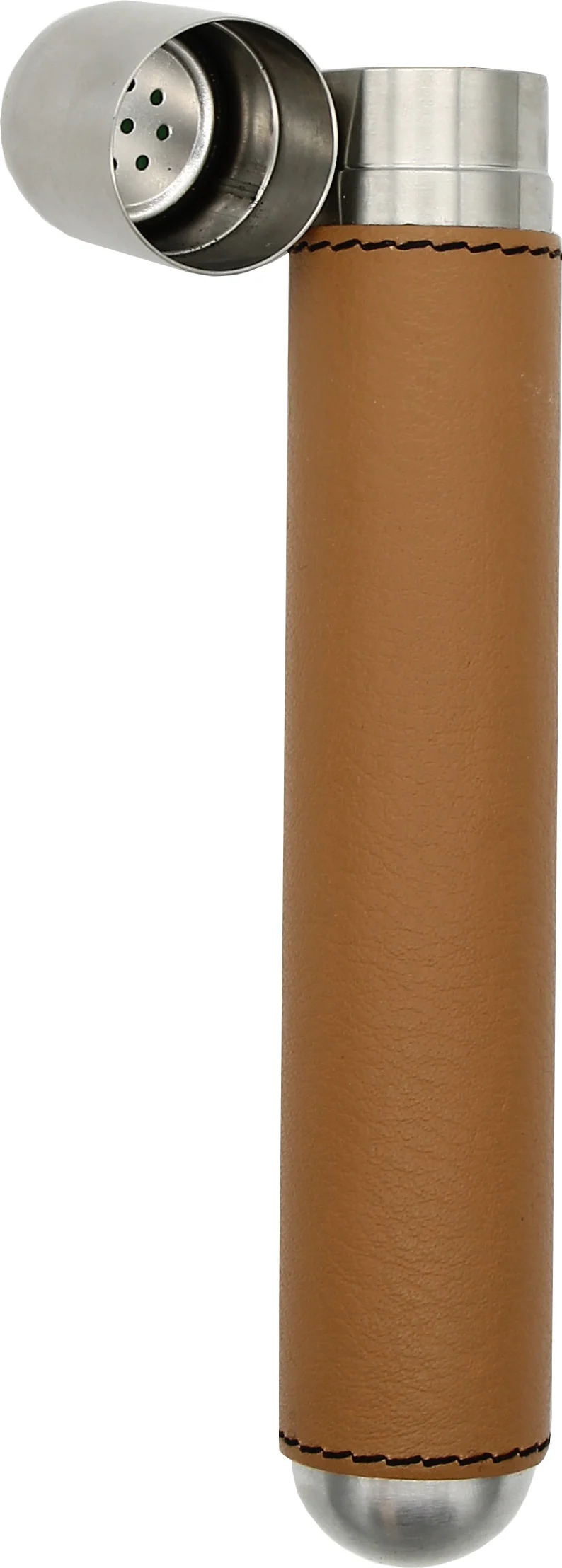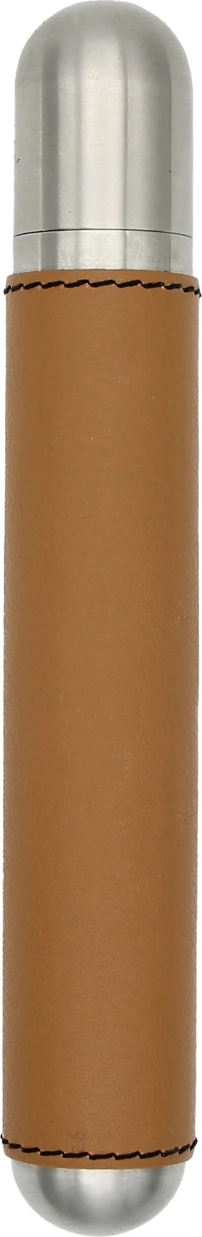 Husă adorini din oțel inoxidabil cu capac din piele maro pentru trabucuri