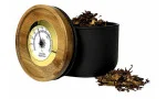 Borcan din sticlă neagră mată, cu capac din lemn, pentru tutun