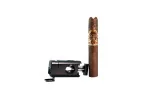 O brichetă cu jet, puternică și multifuncțională, neagră, cu o suprafață mată și elemente decorative în formă de fagure de miere. Această brichetă combină funcționalitatea maximă cu designul modern și este un accesoriu indispensabil pentru pasionații de trabucuri.
