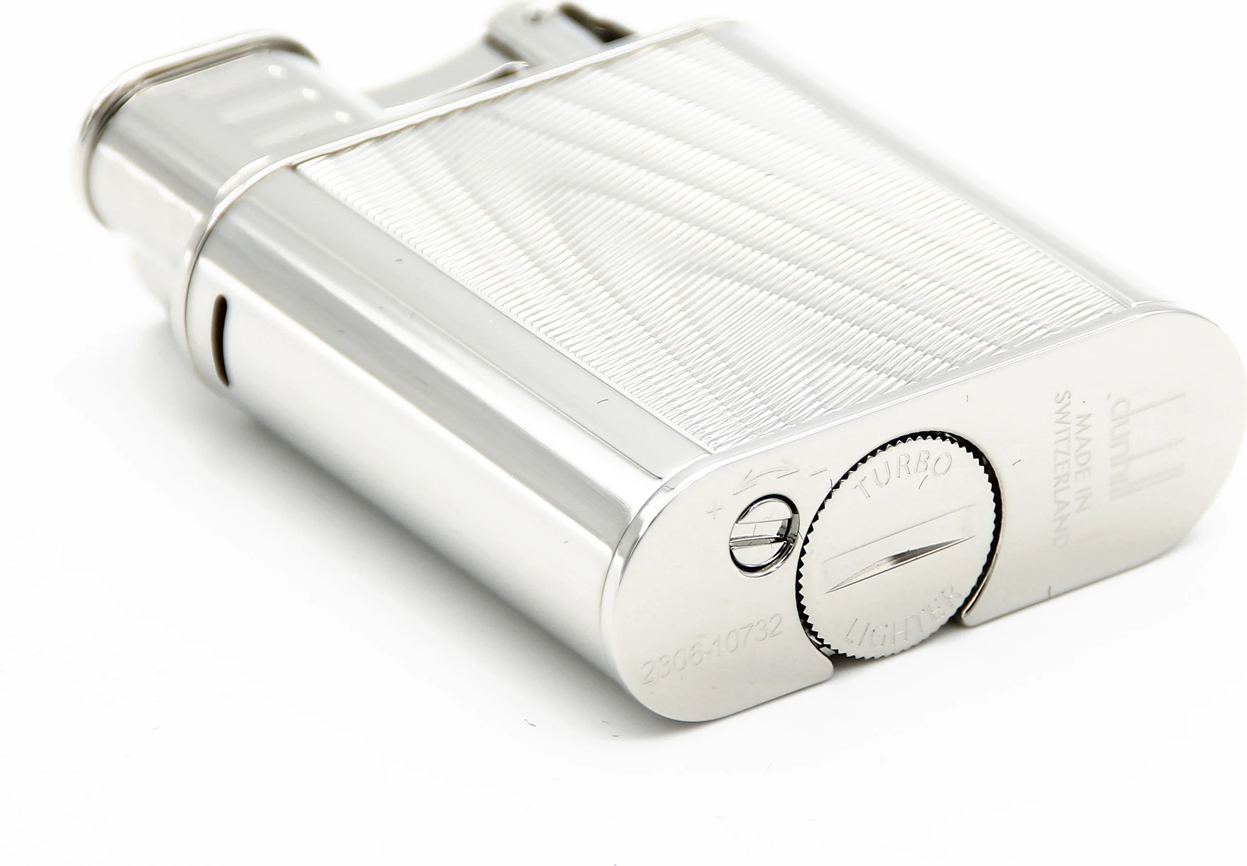 The Dunhill Unique Lighter Turbo with Moiré Texture in Palladium is an incomparable masterpiece from the Dunhill brand. Palladium-coated and made in Switzerland, it represents the highest craftsmanship, precision, and durability.