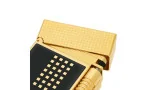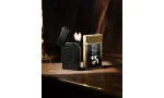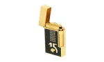 Combinația de suprafață neagră mată cu accente galben-aurii îi conferă brichetei un aspect sofisticat, modern. Este reîncărcabilă, înălțimea flăcării este reglabilă, iar aprinderea se bazează pe cremene înlocuibilă.