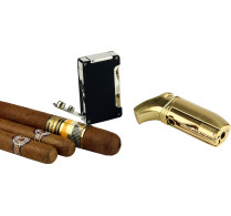 Fie că este de culoare aurie luxoasă sau de un negru atemporal, designul ergonomic al brichetei o face confortabilă în mână și completează aspectul modern și designul înclinat al brichetei. O înclinare de 45 de grade ajută flăcările duble rezistente la vânt să ofere o precizie mare atunci când aprindeți trabucurile.