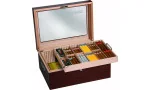 Cu mânere argintii frumoase pe părțile laterale ale humidorului