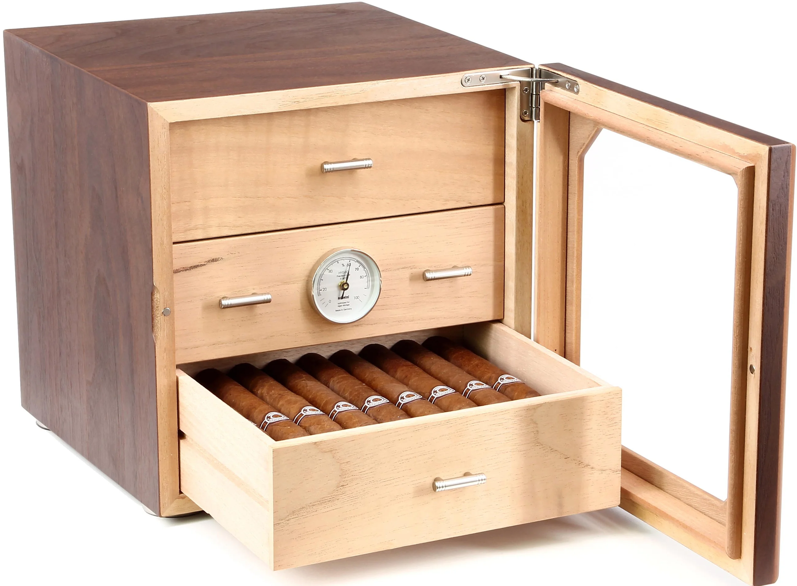 Humidor adorini Chianti M Deluxe cu sertare din nuc și front din lemn