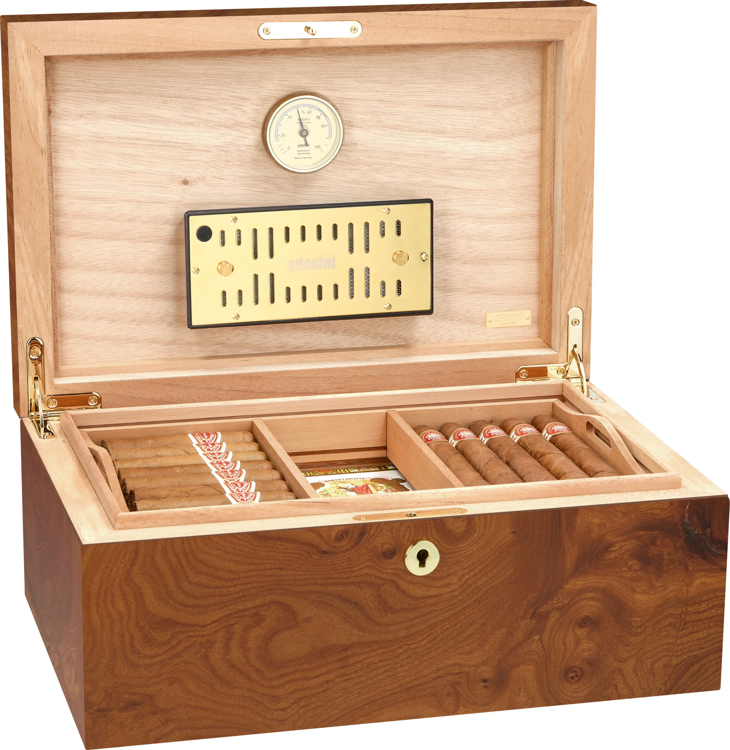 adorini is one of the world's leading brands for humidors. Its products are characterized by high-quality materials, sophisticated design, and innovative functionality. Precise hygrometers and humidification systems from adorini can be found in even the most exclusive humidors in the world. Cigar lovers, restaurateurs, and collectors value adorini for its long-lasting quality, stylish craftsmanship, and reliable precision.
