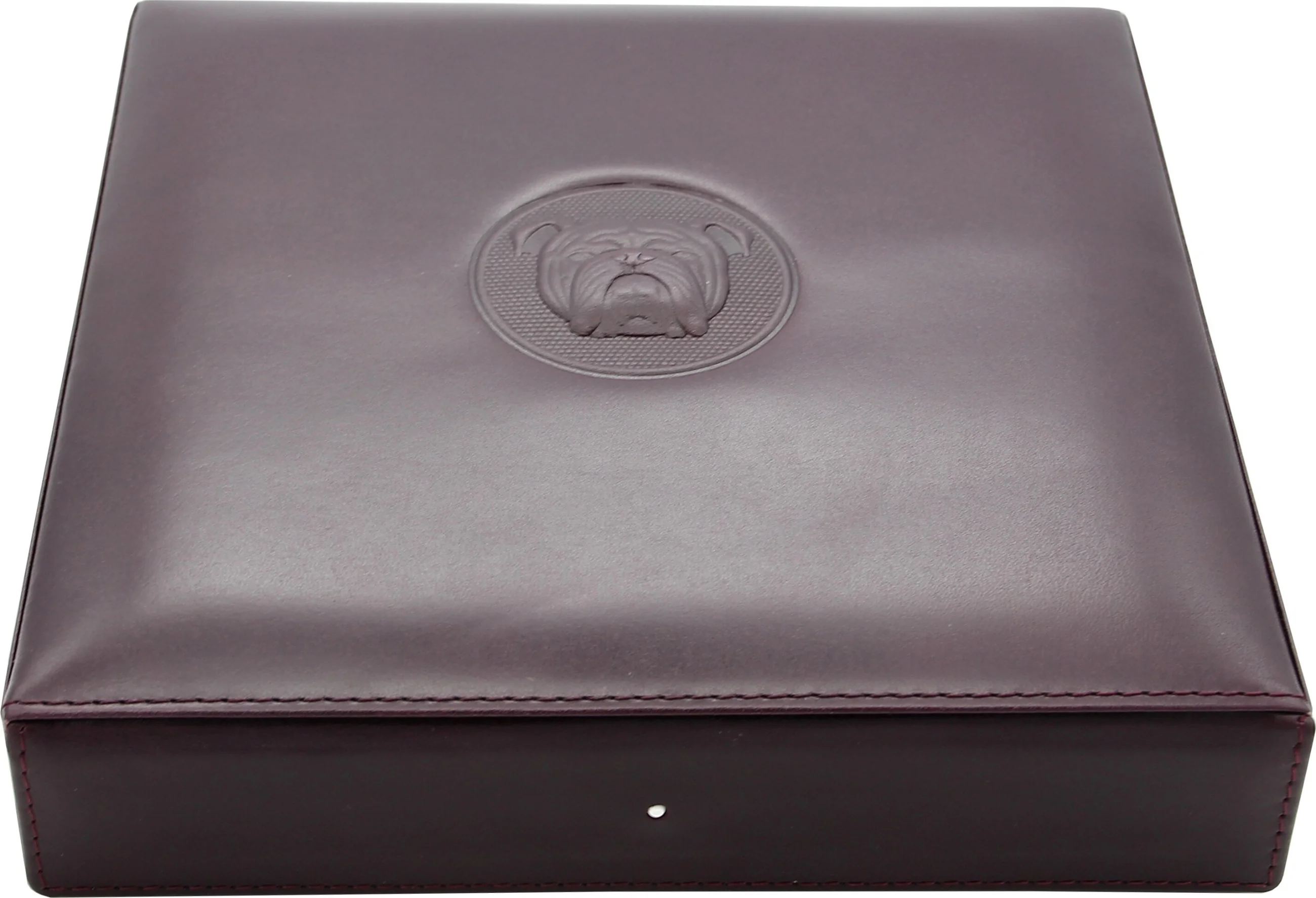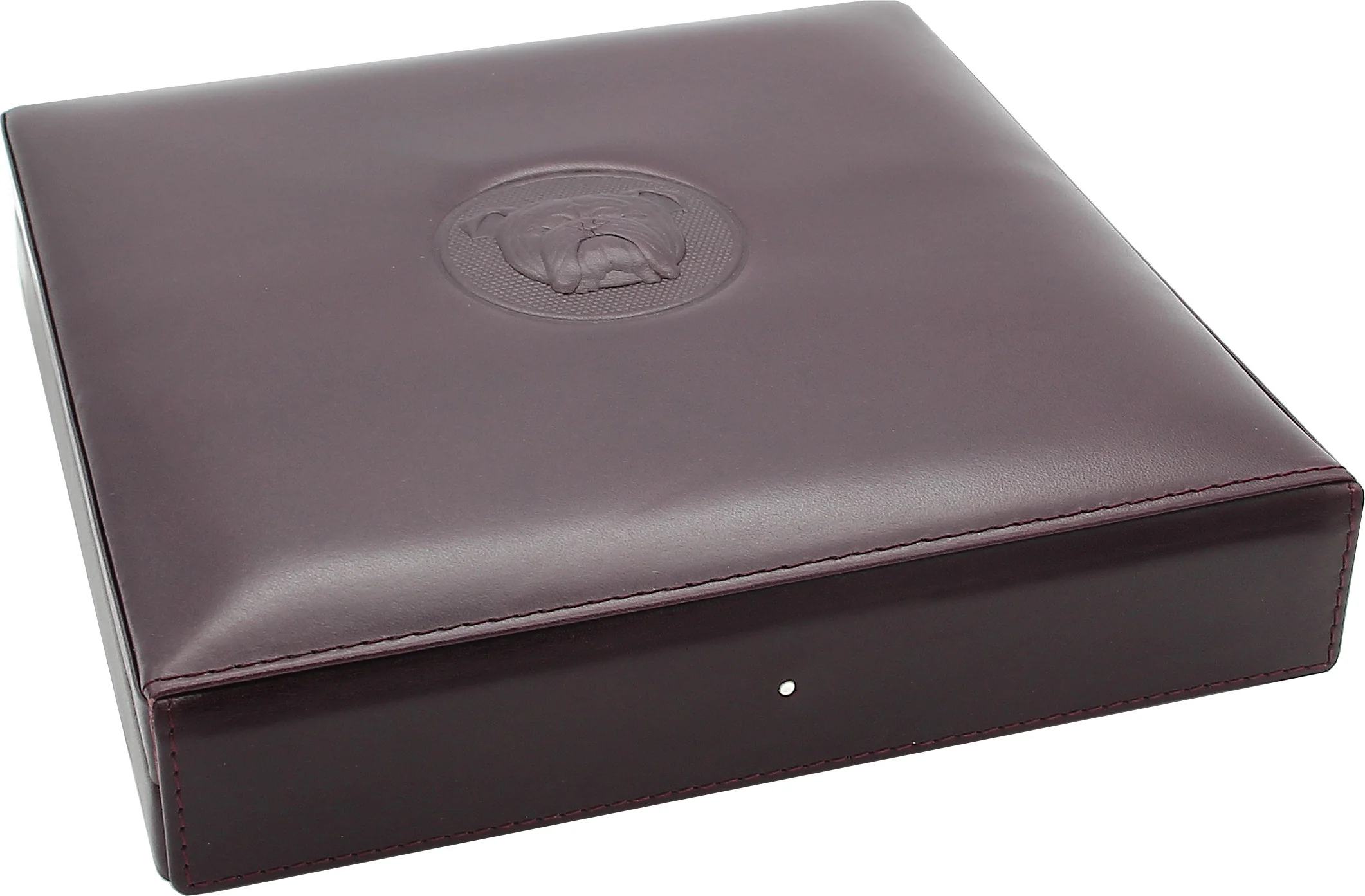 This elegant travel humidor in dark purple from the renowned English heritage brand Dunhill is the perfect companion for on the go. Covered in the finest leather from Spain and lined with high-quality wood, it offers space and protection for approximately 10 cigars. The closure is a magnetic clasp hidden beneath the leather. The embossed bulldog logo on the leather is an unmistakable Dunhill trademark, as is the famous White Spot on the front of the humidor. A sophisticated travel humidor that stylishly protects your cigars and proves to be a reliable companion on all your travels and trips.