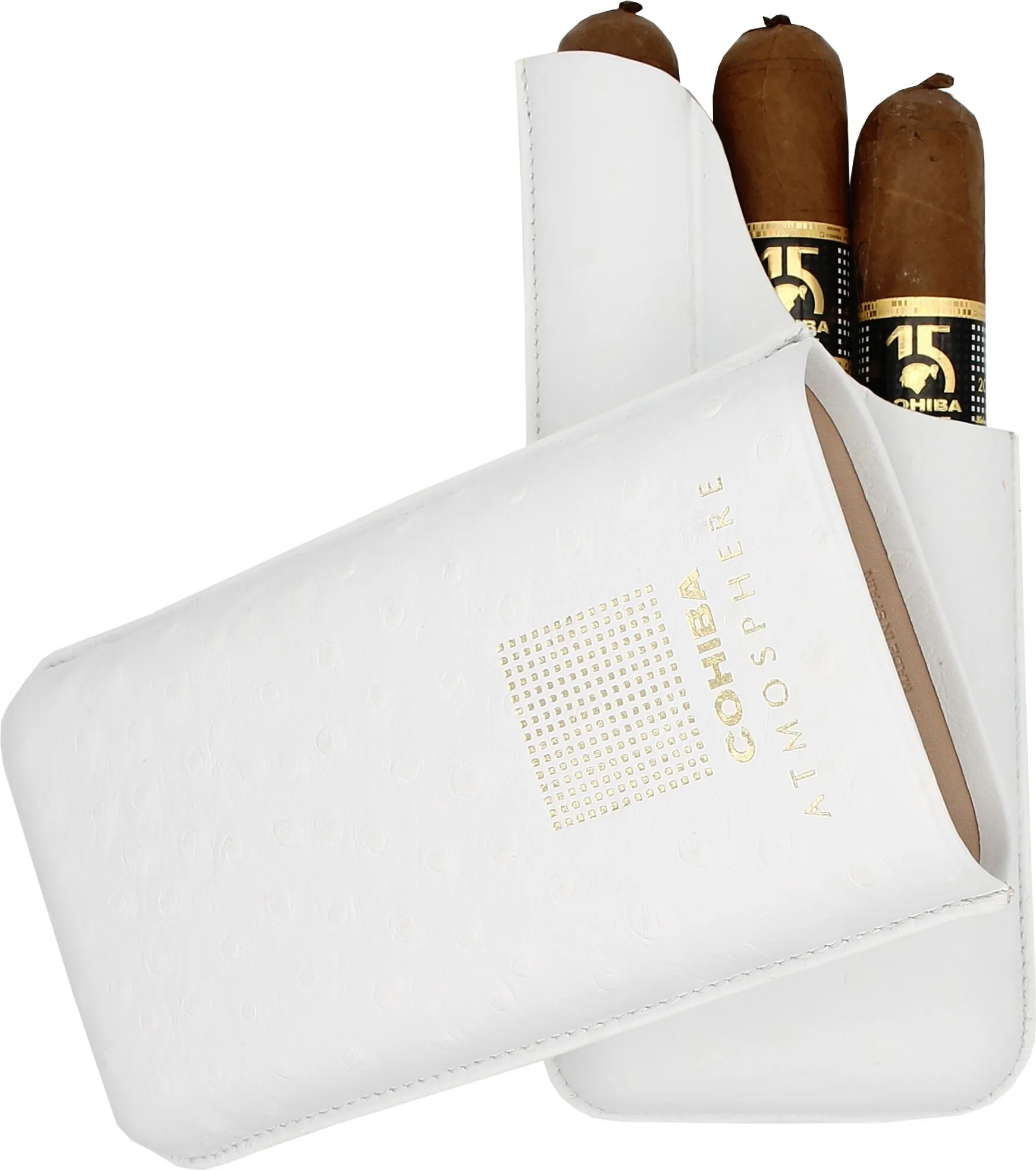 Cohiba Atmosphere Leather Cigar Case White & Gold: Cuban Elegance on the Go