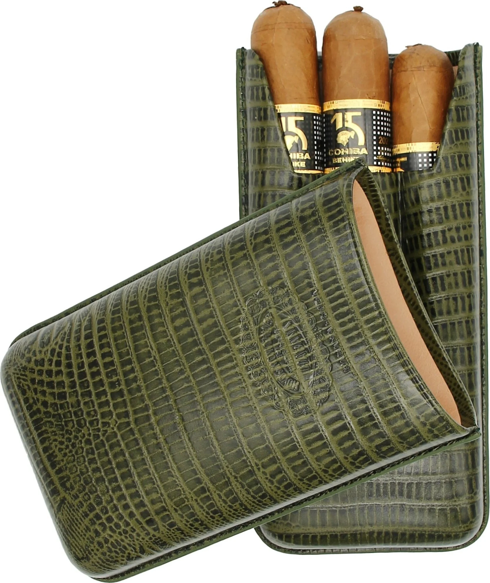 Hoyo de Monterrey Leather Cigar Case, Green, for 3 Cigars