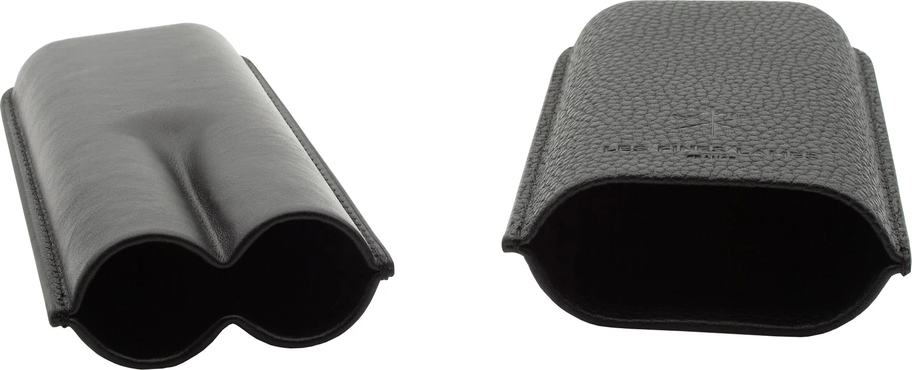 Husa neagră Les Fines Lames pentru două trabucuri este un accesoriu elegant de la brandul francez Les Fines Lames, care a câștigat recunoaștere internațională în primul rând pentru cuțitele sale de înaltă calitate pentru trabucuri. Această husă din două piese combină pielea naturală netedă și granulată, pentru a crea un aspect subtil, dar elegant - ideal pentru pasionații exigenți.