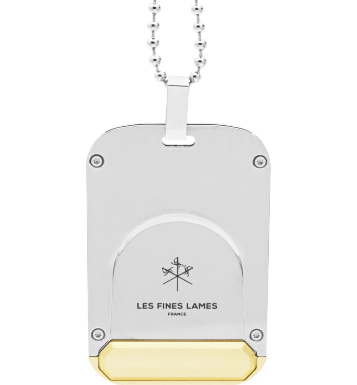 Tăietorul de trabucuri cu fixare la gât - funcția se îmbină cu stilul Cu Les Fines Lames Le Tag auriu, tânărul brand francez prezintă o modalitate modernă și elegantă de a păstra la îndemână un tăietor de trabucuri pentru utilizarea zilnică. Inspirat de modelul plăcuței de identificare a armatei SUA și de un accesoriu la modă cunoscut din stilul hip-hop, acest tăietor de trabucuri combină funcționarea, designul și portabilitatea într-un mod nou. Manoperă de înaltă calitate - fabricat în Franța