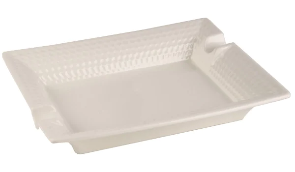 Scrumiera albă, cu model în formă de fagure, este confecționată din ceramică de înaltă calitate, oferind o soluție elegantă pentru a vă bucura de trabucuri cu rafinament. Dispunând de două suporturi convenabile pentru trabucuri, această scrumieră este un accesoriu elegant pentru orice spațiu de fumat.