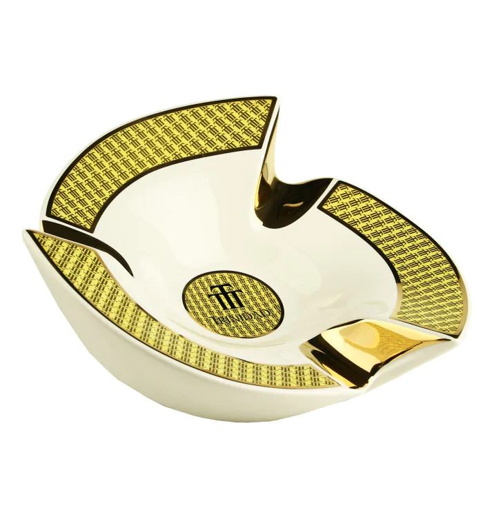 Scrumieră Trinidad de Habanos Cufundați-vă în lumea celei mai vestite culturi a trabucurilor cu scrumiera Trinidad de la Habanos. Această capodoperă din porțelan alb, împodobită cu accente galbene și aurii, captivează prin forma sa extraordinară, asimetrică, ceea ce o face o adevărată atracție pentru priviri. Logo-ul iconic Trinidad este integrat perfect în scrumieră, conferindu-i o identitate inconfundabilă. Proiectată de Nelson Alfonso, un artist renumit în domeniul designului de țigări, această scrumieră este o operă de artă în sine. Dispunând de trei suporturi aurii pentru trabucuri, aceasta oferă nu numai funcționalitate practică, ci și o notă de lux. Cântărind 868 de grame și măsurând 22,5 x 22,5 x 7,5 cm, aceasta atestă o măiestrie solidă și precisă. Scrumiera Trinidad este livrată într-o cutie de cadou atractivă, ceea ce o face un obiect de colecție râvnit sau un dar ideal pentru pasionații de trabucuri, cunoscuți și sub numele de Aficionados. Cumpărați scrumiera Trinidad de la Habanos și lăsați-vă captivat de designul său unic și de excelența măiestriei sale. Un must-have pentru orice pasionat de trabucuri.