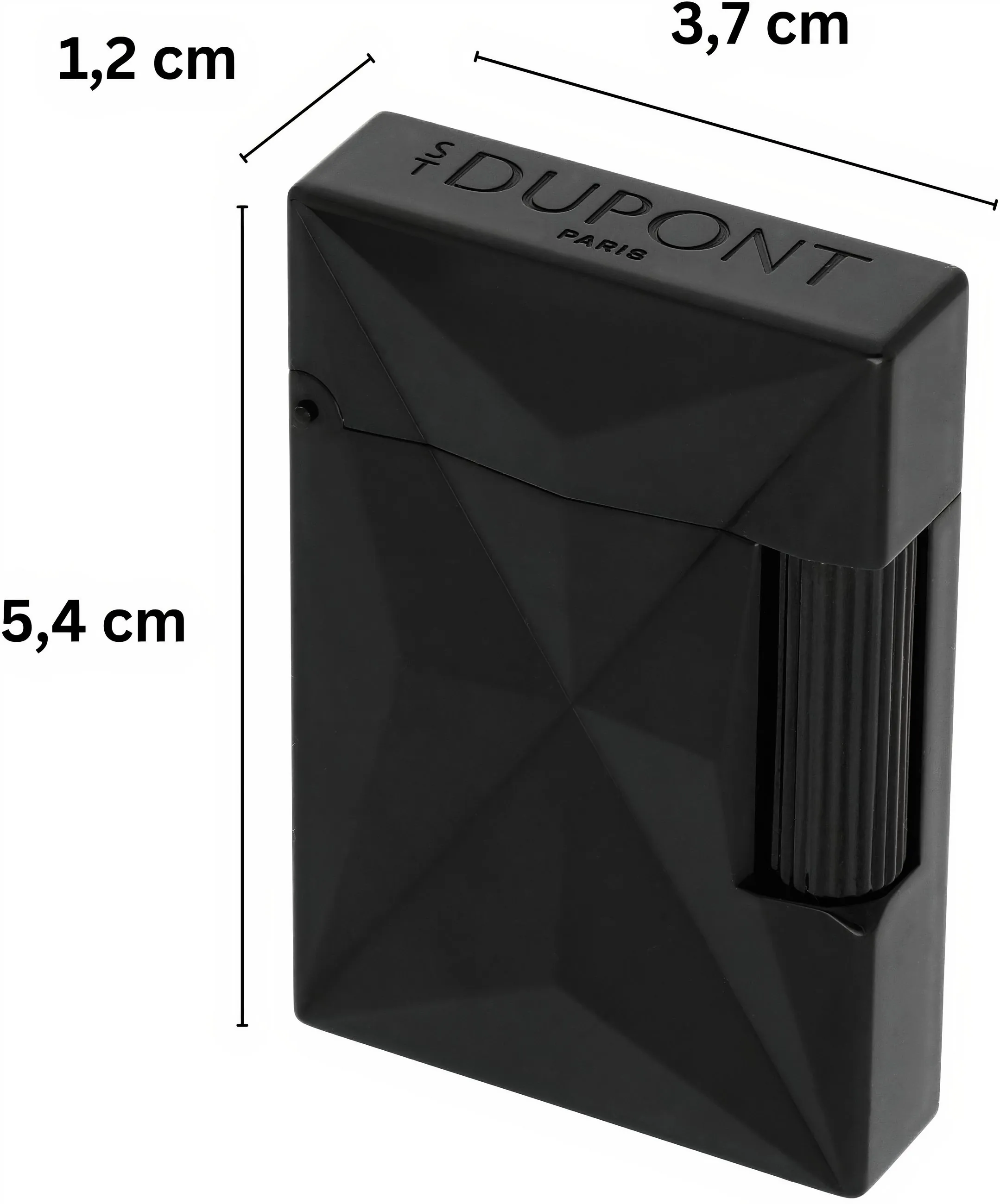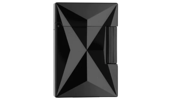 - **Design și materiale:** Bricheta este un model mic al Ligne 2, realizat dintr-un corp lăcuit în negru lucios. Liniile ascuțite, grafice, amintesc de simbolul chimic al focului.