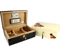 Sărbătoriți Anul Nou Chinezesc sau etalați-vă propriul semn zodiacal cu această colecție de creații artistice frumoase. Fiecare humidor prezintă o imagine stilizată a unui simbol al zodiacului chinezesc. Poate cel mai bun exemplu este rafinatul humidor Anul Caprei, cu un finisaj negru lucios cu modele chinezești seducătoare și caligrafie din lac roșu.
