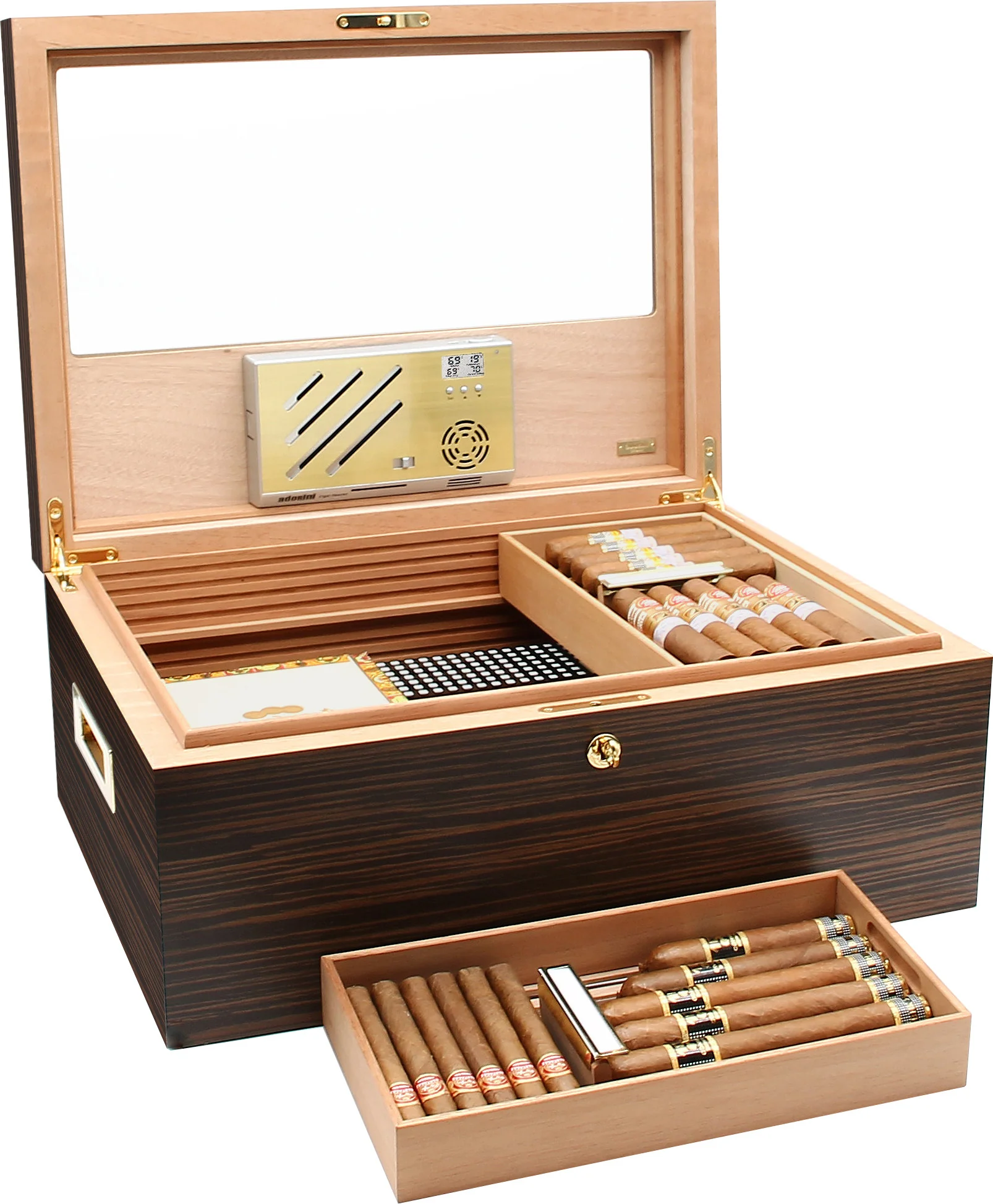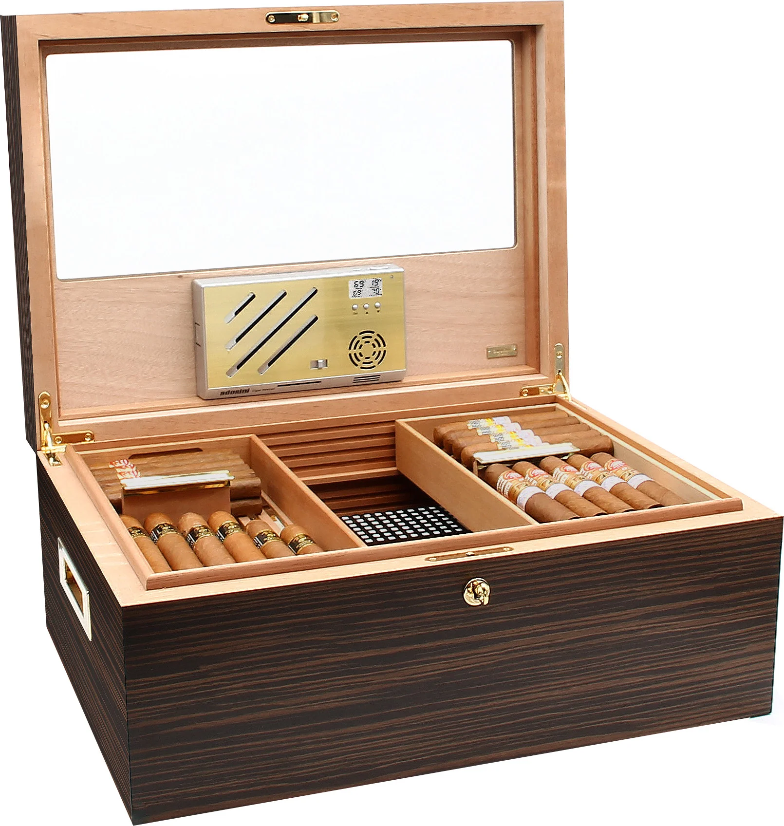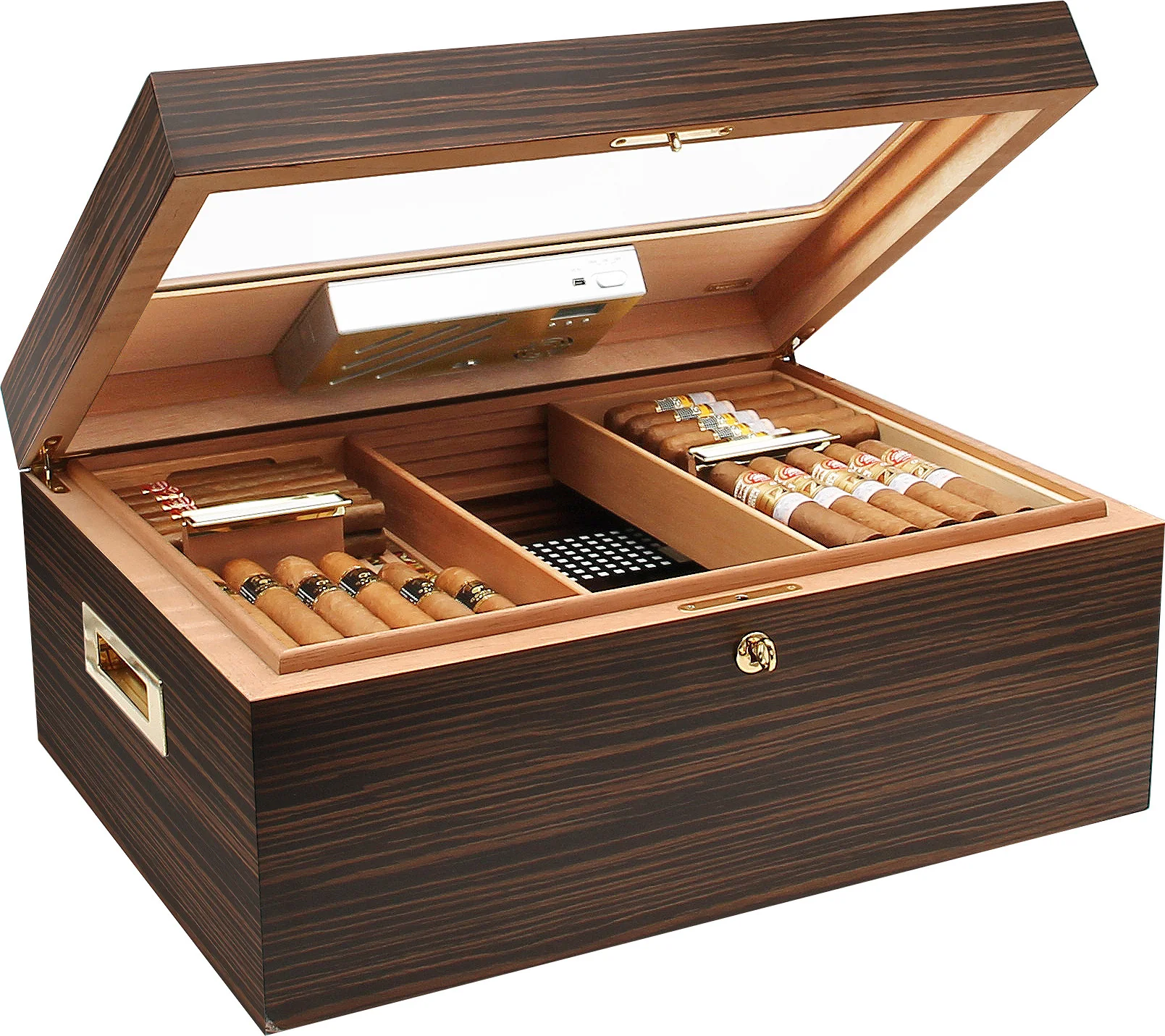 - Capacitate de până la 500 trabucuri corona.Calculează on-line cât de multe dintre trabucurile preferate se vor potrivi în humidor