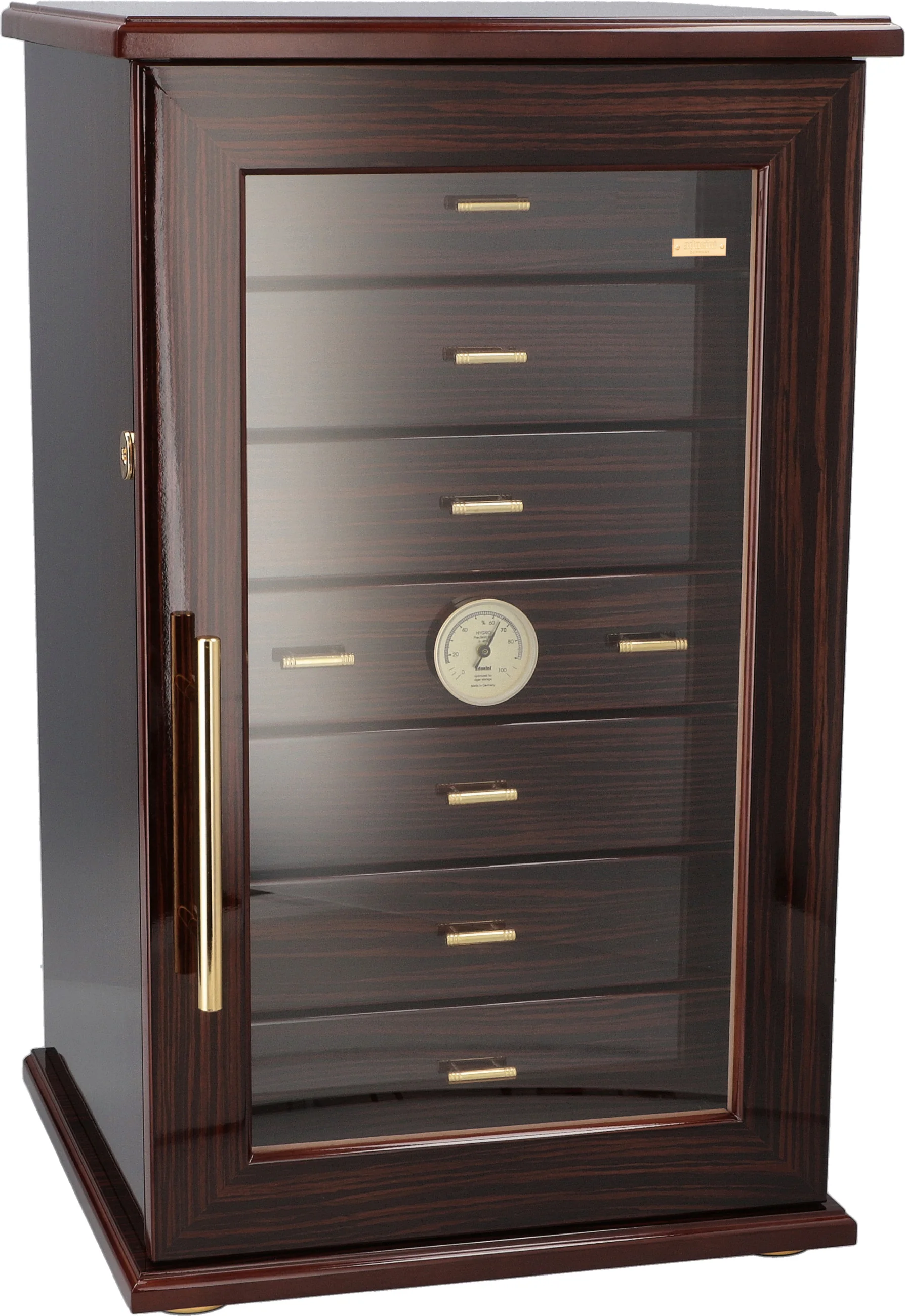 - Higrometru cu păr de înaltă precizie, precalibrat, optimizat pentru păstrarea trabucurilor