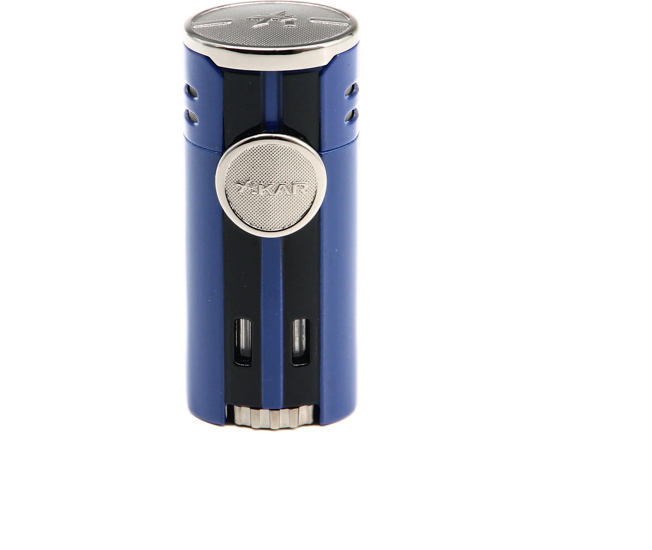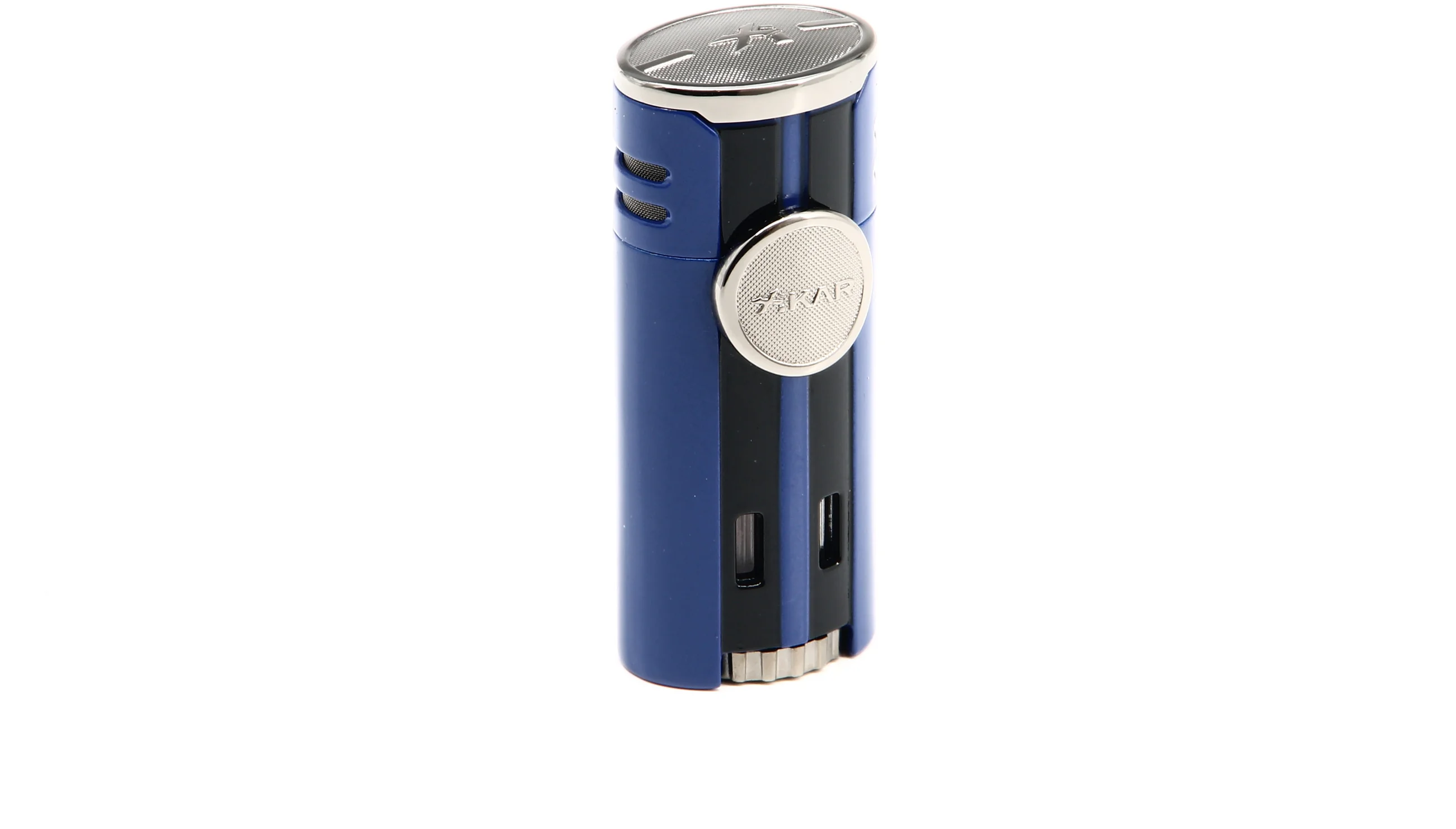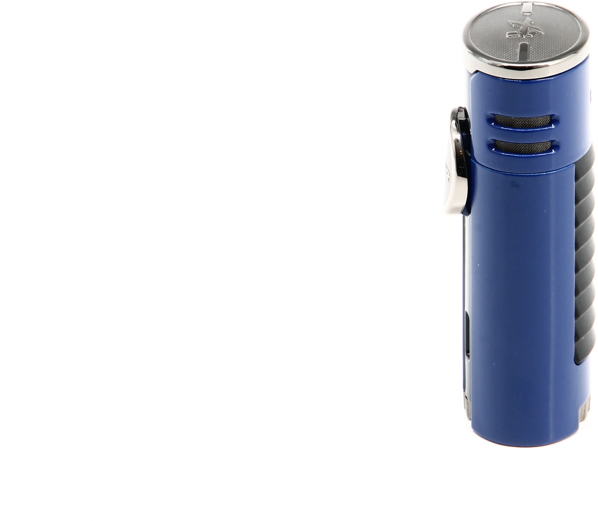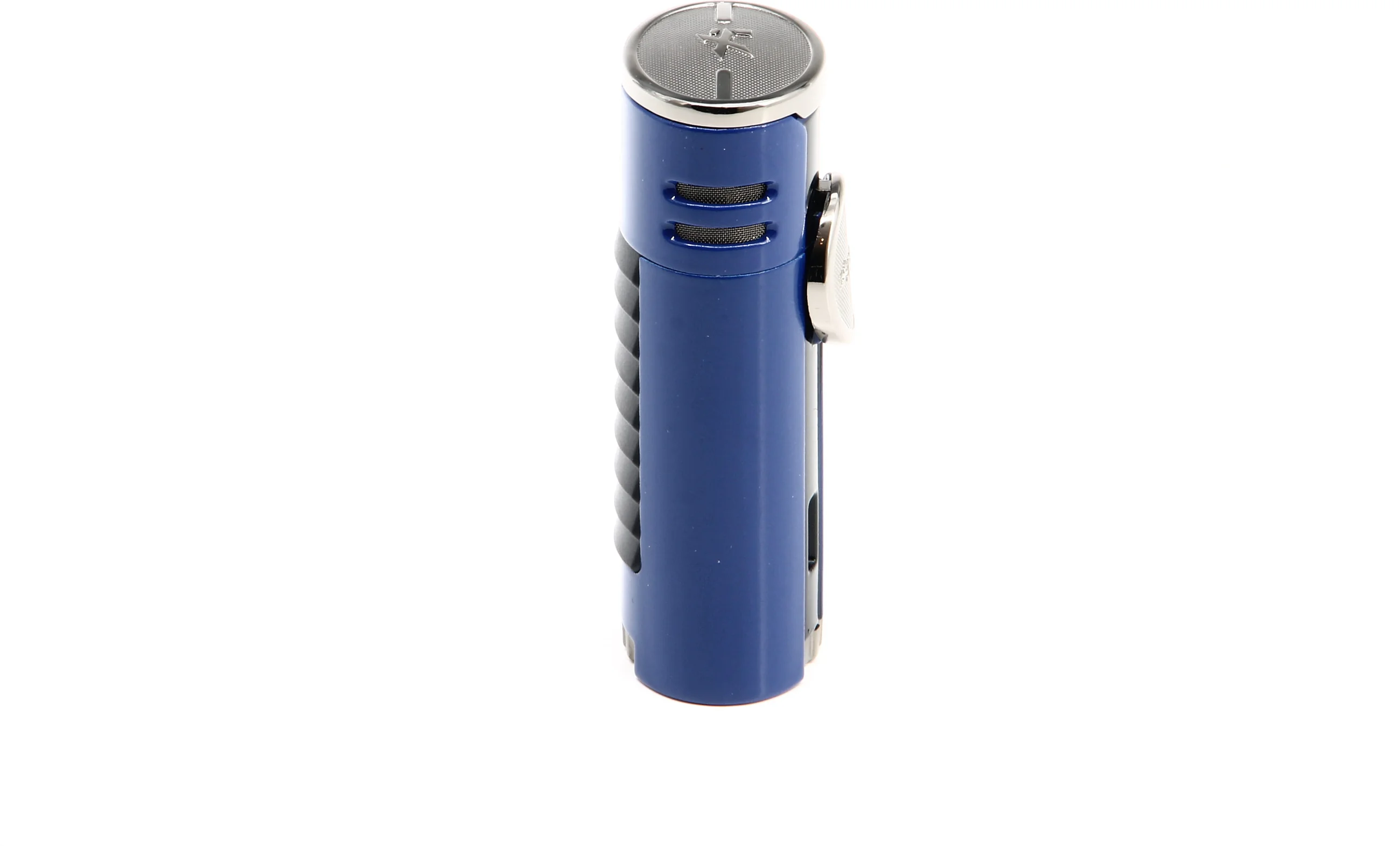 Acest brichetă Xikar HP4 Quad atrage imediat atenția cu un finisaj albastru intens, care este subliniat de accente cromate. Amintind de supermașinile care au inspirat designul brichetei, un panou din spate cu lamele adaugă un plus de fler la aspectul elegant și modern.